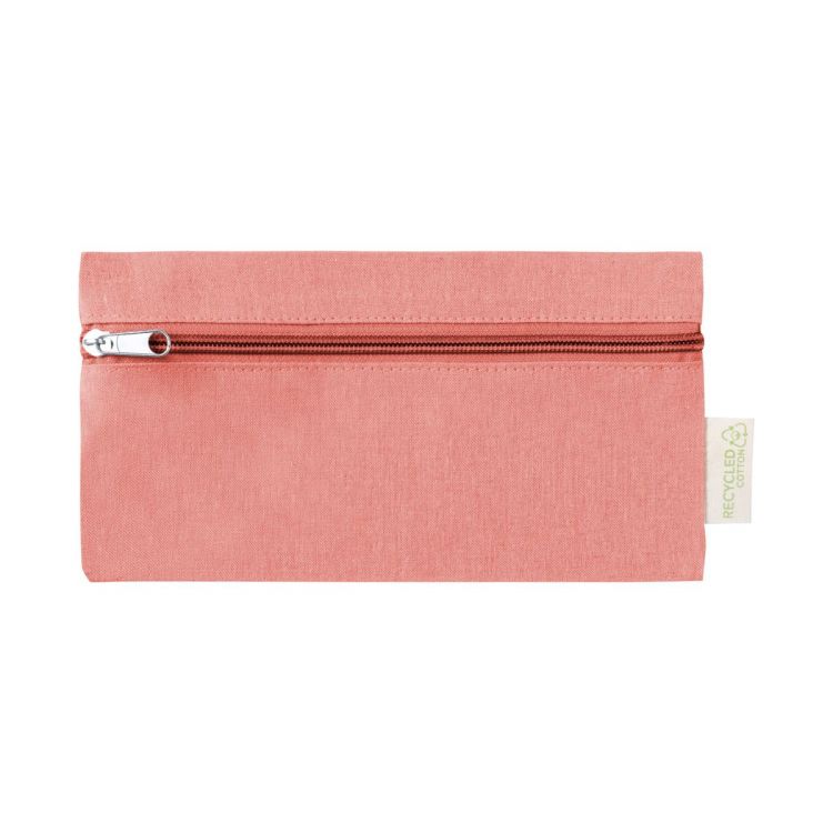 Zipped recycled cotton pen case with distinctive label. 100% recycled cotton.