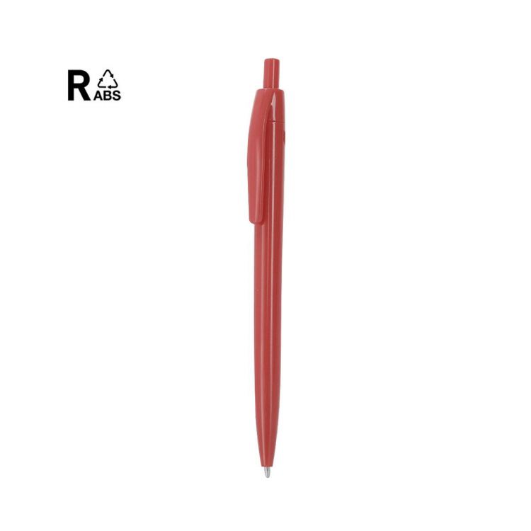 Pen made in RABS. Push mechanism and blue ink. RABS label on the top of the pen.RABS is a highly recyclable plastic with great strength and multiple applications that make it an eco-friendly solution.