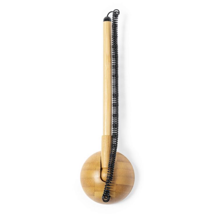 Nature line ball pen made of bamboo, in blue ink and with extendable cord. Including bamboo holder for the pen, with 3M adhesive on the base, extra strong and residue-free when removed. Presented in an individual box with kraft design. (neutral color)