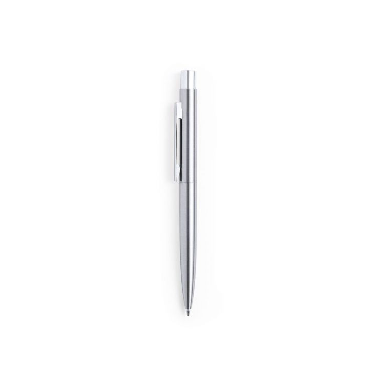 Eco-friendly ball pen made in recycled stainless steel. Push-button mechanism, with silver finish barrel and chrome plated fittings. Metallic clip and with the distinctive of recycled stainless steel on the top of the pen. Jumbo cartridge and blue ink.Set presented in an individual kraft design case with matching sleeve.Steel is one of the most demanded materials and can be found almost everywhere, from everyday products to major constructions. With countless properties, including durability and a high level of reusability, it is a much valued alternative for sustainable solutions. Properly treated, new resources of infinite use can be obtained. (silver color)