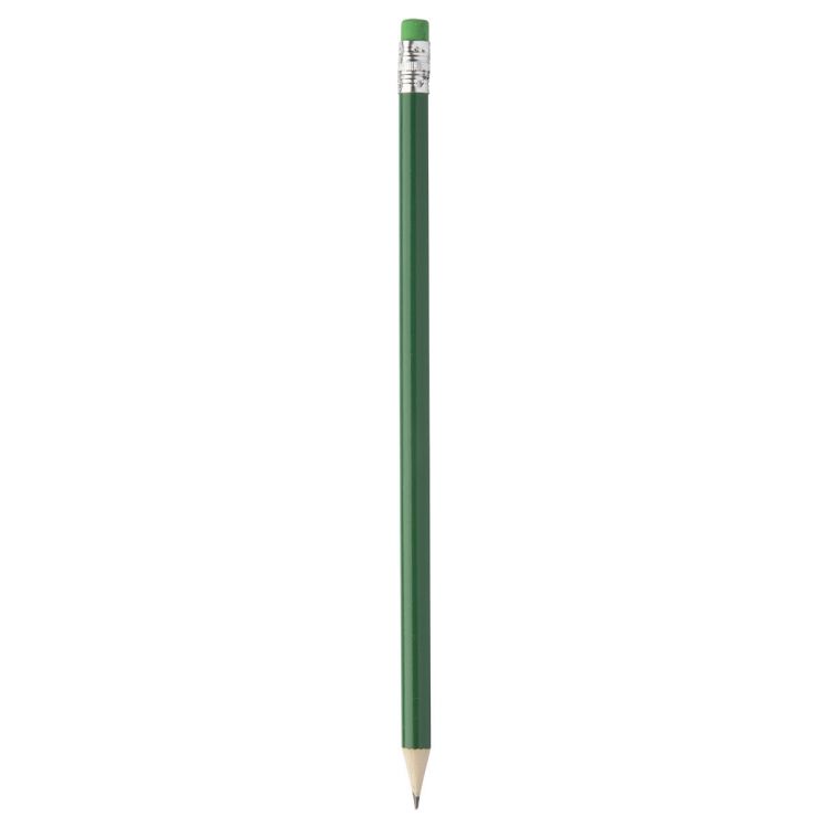 Wooden lead pencil with matching colour eraser, sharpened.