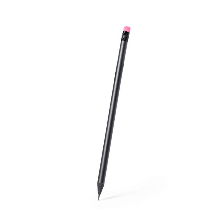 Elegant black pencil made of natural wood, with practical eraser and available in different colours. With black lead and sharpened tip.