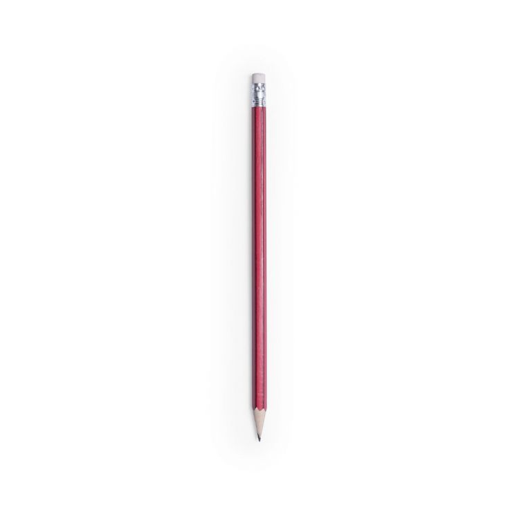 Wooden pencil with glossy finish. Hexagonal barrel and two-tone design, with white rubber. Available in a wide range of colours, with black lead and sharpened tip.