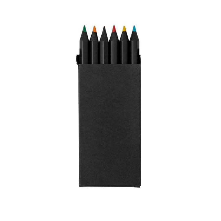 Set of 6 wooden pencils finished in black, with hexagonal body and leads in various colours. Presented in a black recycled cardboard box with flap closure. (black color)
