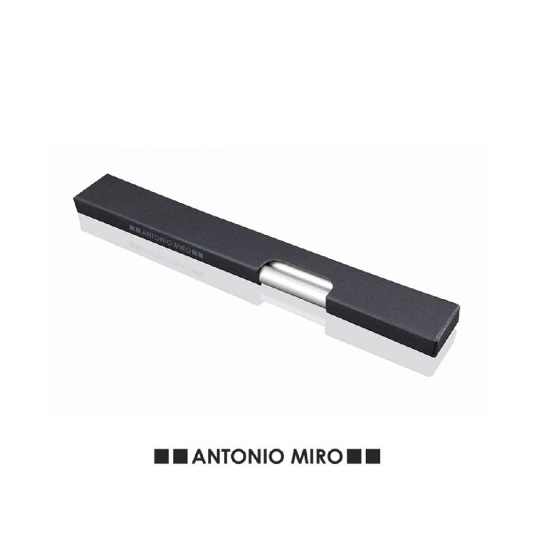 Set of 3 wooden pencils by Antonio Miró in an elegant silver finish, with the the brand logo on top. Presented in an elegant black cardboard box with window and the brand logo. (neutral color)