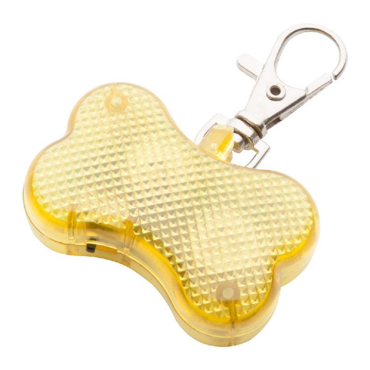 Bone shaped pet safety light with flashing LED lights. With button cell batteries.
