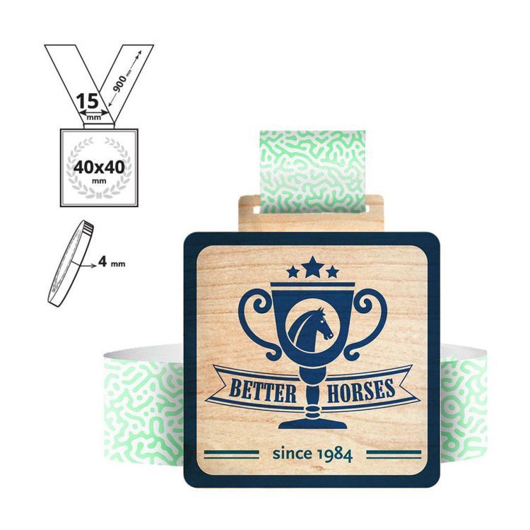 Square medal printed in full colour on the front, and including a fully customisable 15x900mm lanyard. Thanks to the special processing - laser cutting and full colour UV printing on the entire surface, we can realise any customisation requested by the customer.
