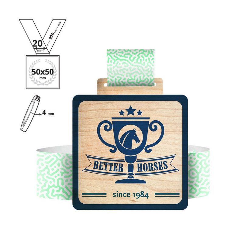 Square medal printed in full colour on the front, and including a fully customisable 20x900mm lanyard. Thanks to the special processing - laser cutting and full colour UV printing on the entire surface, we can realise any customisation requested by the customer.