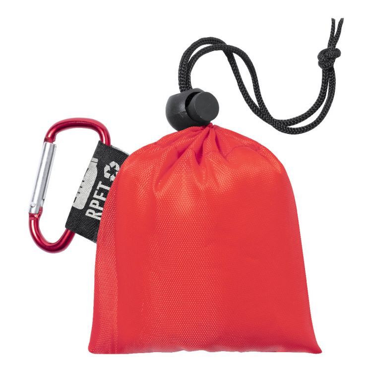 Transparent LDPE poncho in one size for adults. In RPET polyester carry pouch with distinctive RPET label and aluminium carabiner.