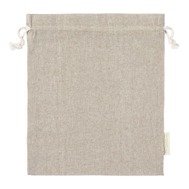 Reusable recycled cotton produce bag with drawstring closure. 100% recycled cotton, 120 g/m².