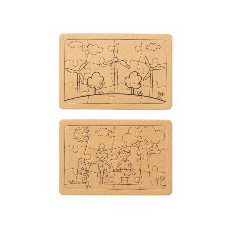 Nature line puzzle set made in recycled cardboard. Including 2 jigsaw puzzles of 12 pieces each. Set presented in an individual box with kraft design. (neutral color)