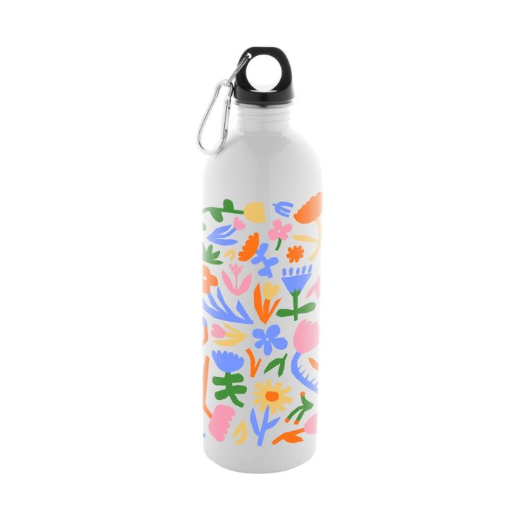 Recycled stainless steel bottle for sublimation printing with aluminium carabiner, 750 ml, in white color