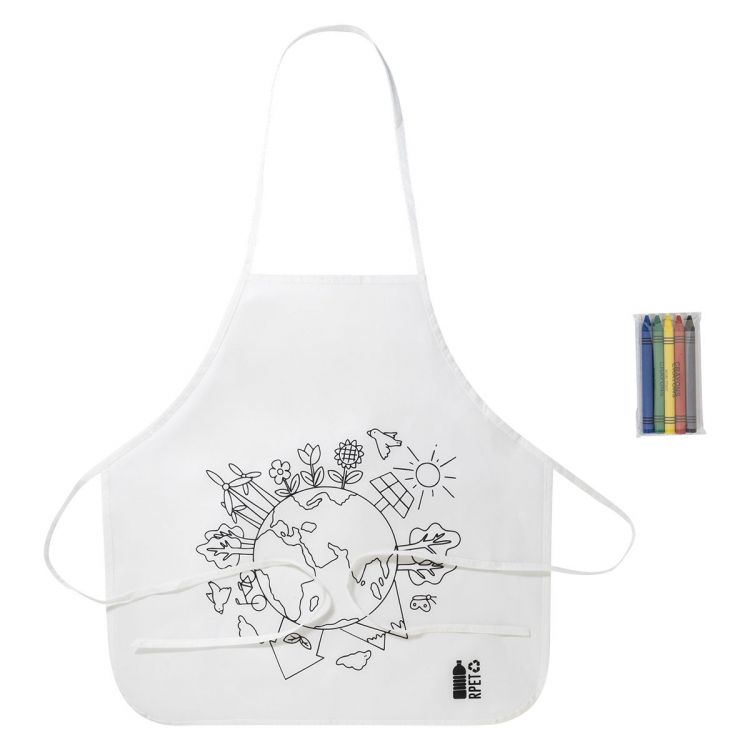 Colouring apron for children in RPET non-woven with 5 crayons