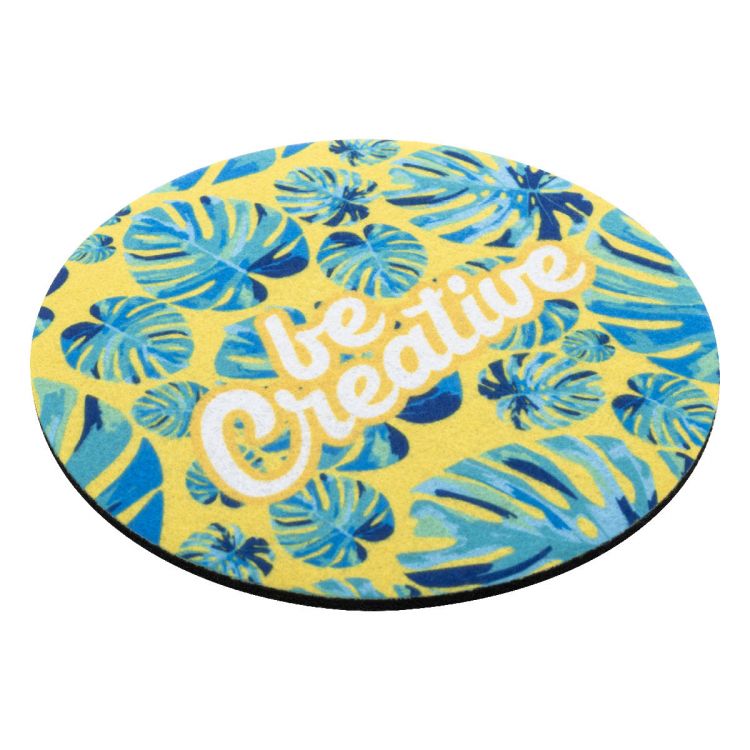 Custom made, RPET felt coaster with rubber anti-slip base and custom graphics on one side. Price includes sublimation printing. MOQ: 100 pcs
