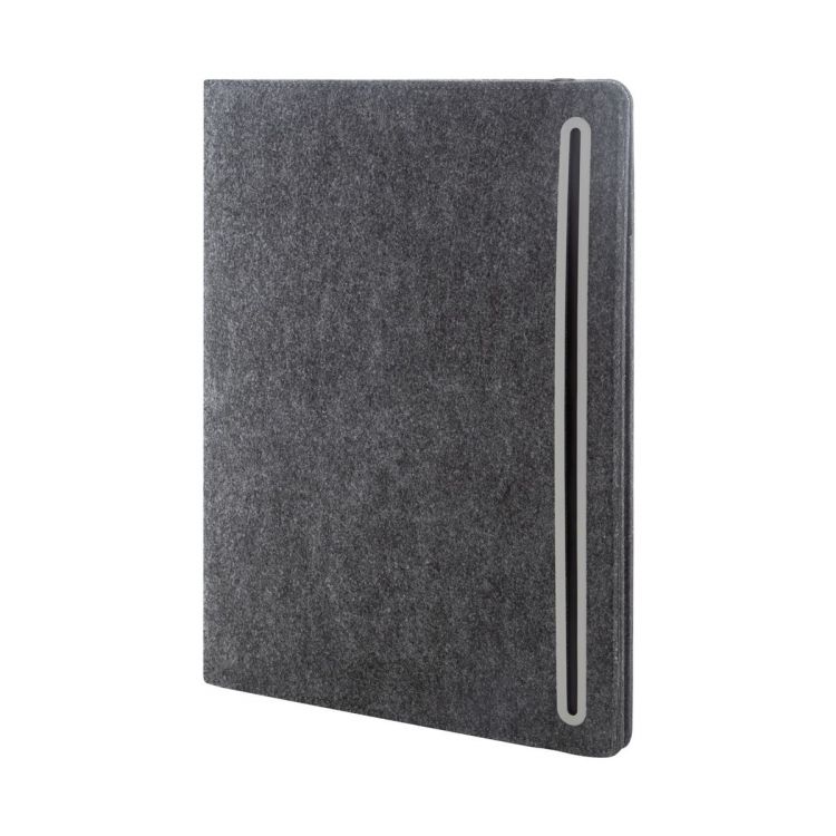 A4 sized, RPET felt document folder with front and multiple inside organizer pockets. With 20 lined sheets notepad in recycled paper.