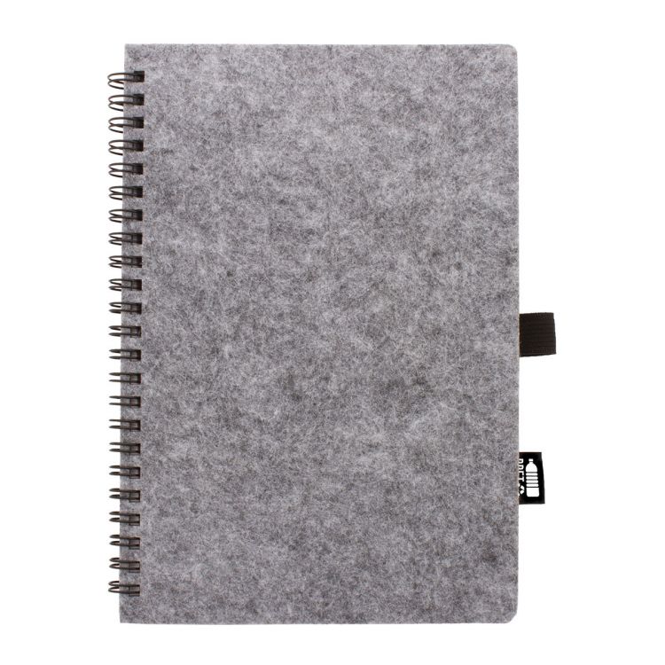 RPET felt covered spiral notebook with distinctive RPET label and 80 lined sheets in recycled paper. A5 size, in grey color