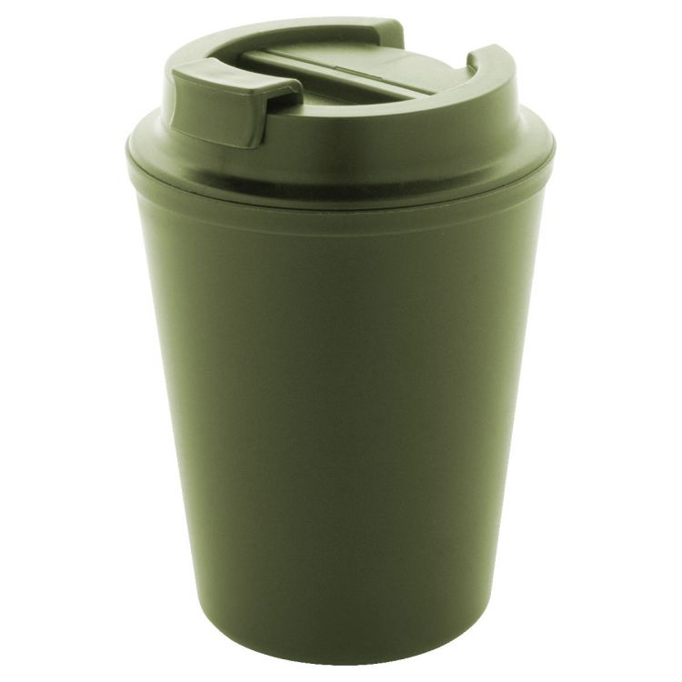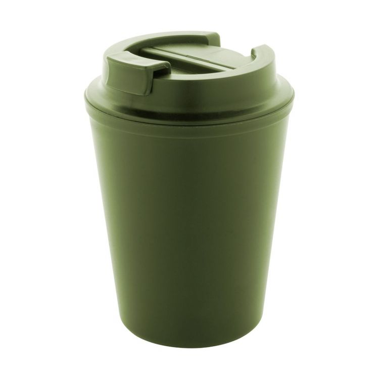 Double-wall, recycled PP plastic insulated thermo cup with drinking lid. 300 ml.