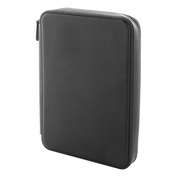 Zipped luxury document folder in recycled PU leather, with 64 lined sheets notepad in recycled paper. Featuring multiple interior pockets for cards and documents. A5 size.