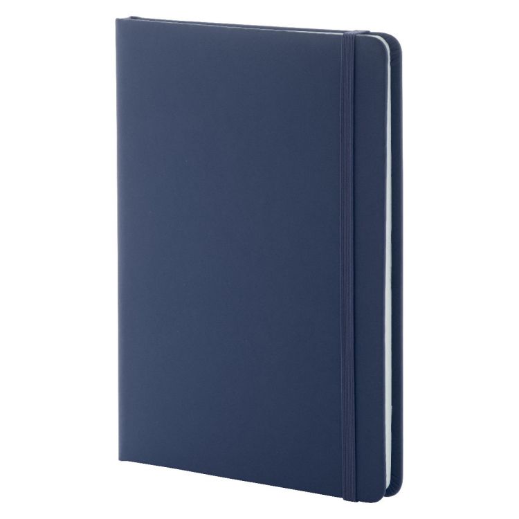 Recycled PU leather covered notebook with 100 lined sheets in recycled paper. With matching colour bookmark and rubber band. A5 size.