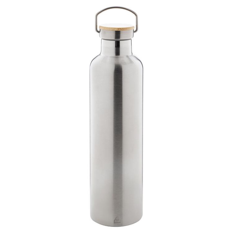 Double-wall, recycled stainless steel vacuum insulated bottle with bamboo carry lid, 1000 ml.