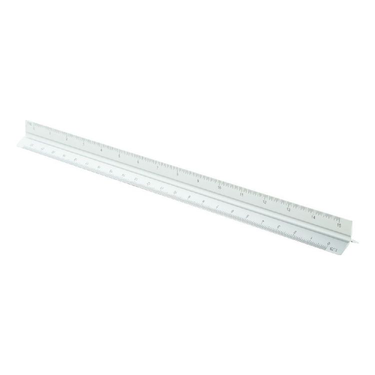 Aluminium scalameter ruler in triangular shape. With 30 cm ruler and 1:20/1:25/1:50/1:75/1:100 scales