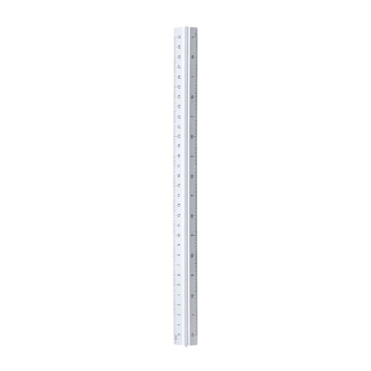 30cm triangular design aluminum scale meter. Scales 1:20/1:25/1:50/1:75/1:100. Smooth face for printing. Presented in an individual box. (neutral color)