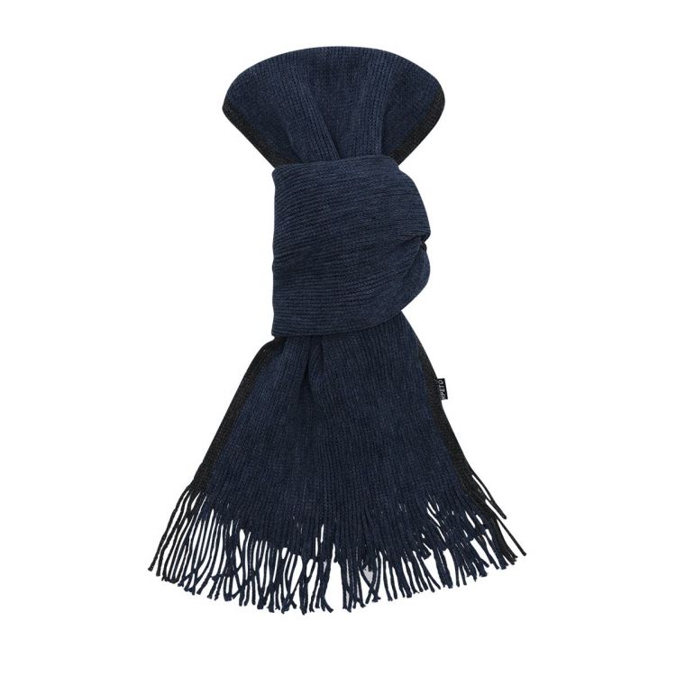 Soft scarf made of warm RPET polyester. Made in stylish colours, with contrasting edges and fringed finish. With RPET label and presented in an elegant black box with lid. RPET material is made from recycled plastic, thus promoting the reuse of plastic waste and helping the sustainability of the planet.