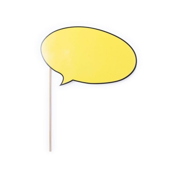 Selfie accessory in the shape of a sandwich. In striking yellow color and with a wide printing area. High gsm paper, with wooden handle. (neutral color)
