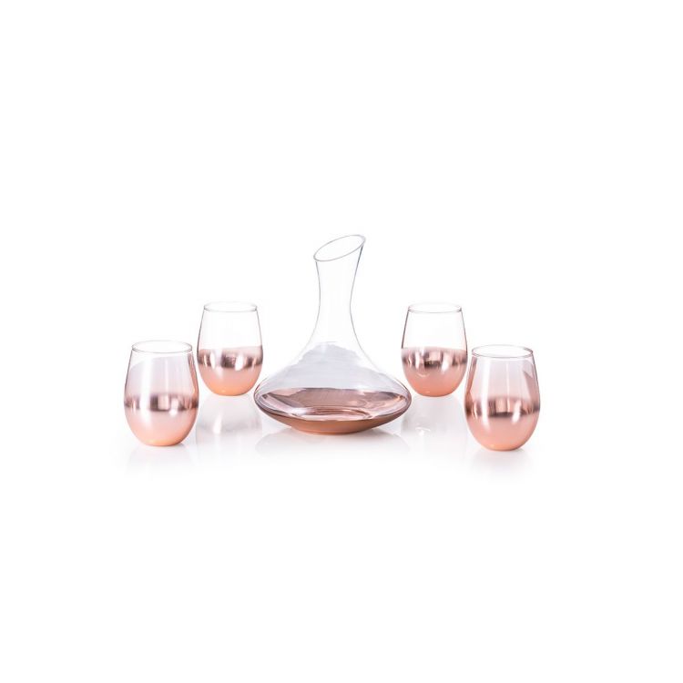 Elegant wine set made of glass, with a delicate and innovative gradient rose coating. A design gift that includes 4 glasses of 500 ml and a decanter of 1.8 l.Presented in an exclusive individual black design box. (neutral color)