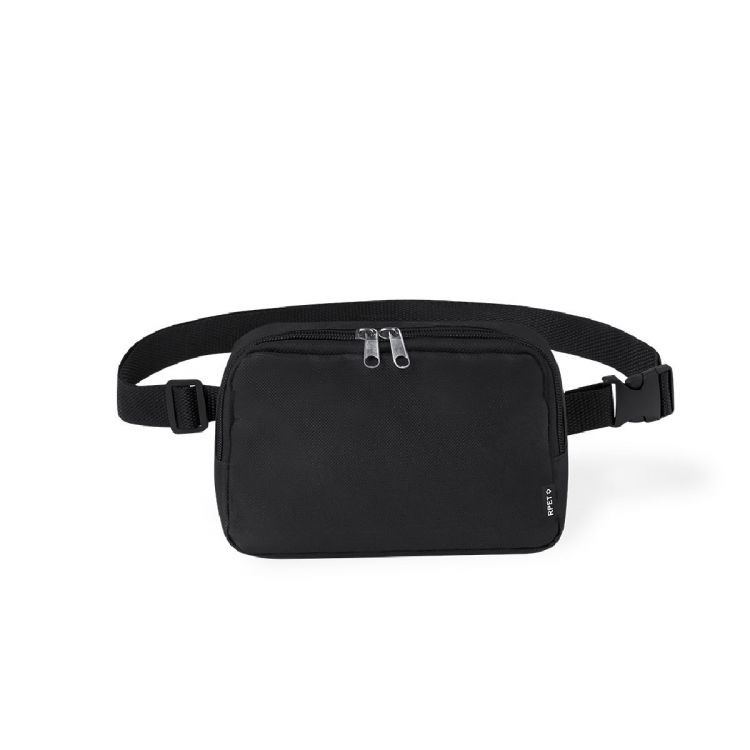 Rectangular design waist bag made of RPET 600D polyester. Features a central zipped pocket with double puller and adjustable strap with buckle closure. It also includes a distinctive RPET label and comes individually packaged in a recycled bag.RPET material is made from recycled plastic, thus promoting the reuse of plastic waste and helping the sustainability of the planet.