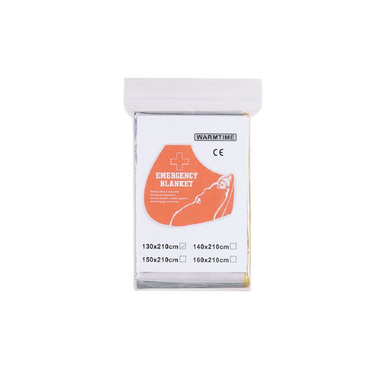 Practical thermal blanket made of aluminized PET, designed for versatile applications. Its double function allows for temperature regulation: with the silver side facing out, it reduces heat, while with the golden side facing out, it retains body heat. Light, compact, and easy to transport, it is water and wind-resistant, ideal for various situations. (gold color)