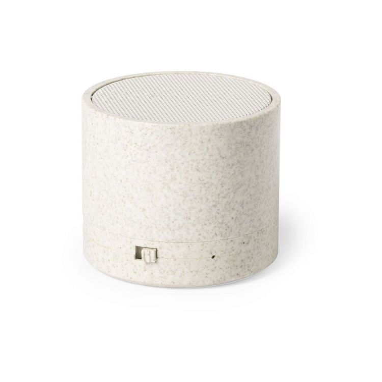 Nature line, compact, Bluetooth® 5.0connectivity speaker. Shell in wheat straw, to encourage the use of natural raw materials and reducing contaminant emissions. 3W of power, compatible with iOS and Android, and including mini USB charging cable. With non-slip rubber pads at the base and presented in an attractive, eco design box. (neutral color)