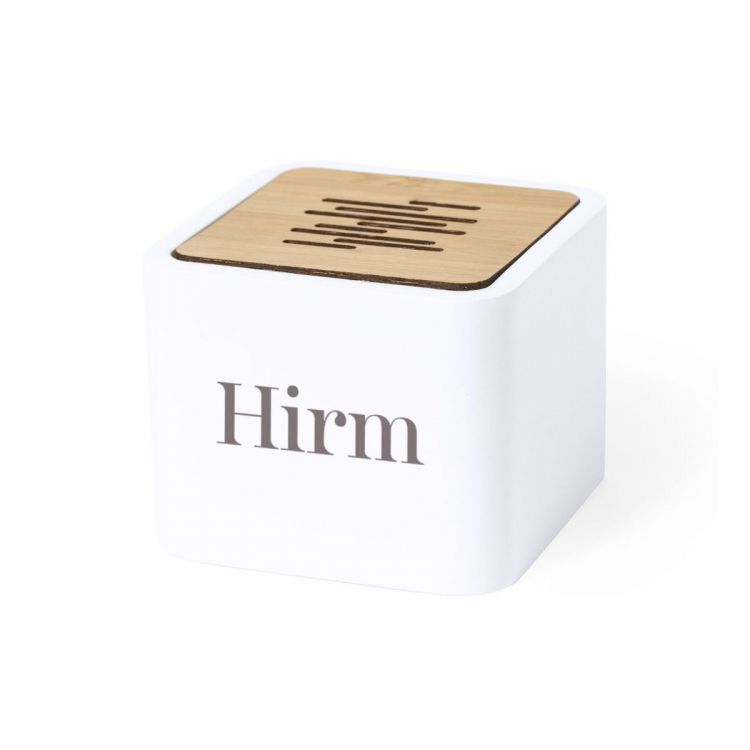 Nature line speaker with Bluetooth® 5.0 connection. Made from a combination of bamboo and PLA -Poly Lactic Acid-, which is obtained from 100% natural resources such as corn starch, yucca or sugar cane, able to become 100% compostable at the end of its lifespan. 3W power, with hands-free function and rechargeable via USB cable -included-. Presented in an attractive eco-design box. With PLA emblem on the item. (white color)