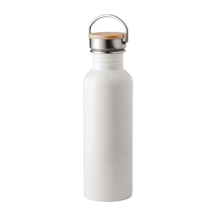 Coloured stainless steel bottle with bamboo carry lid, 800 ml.