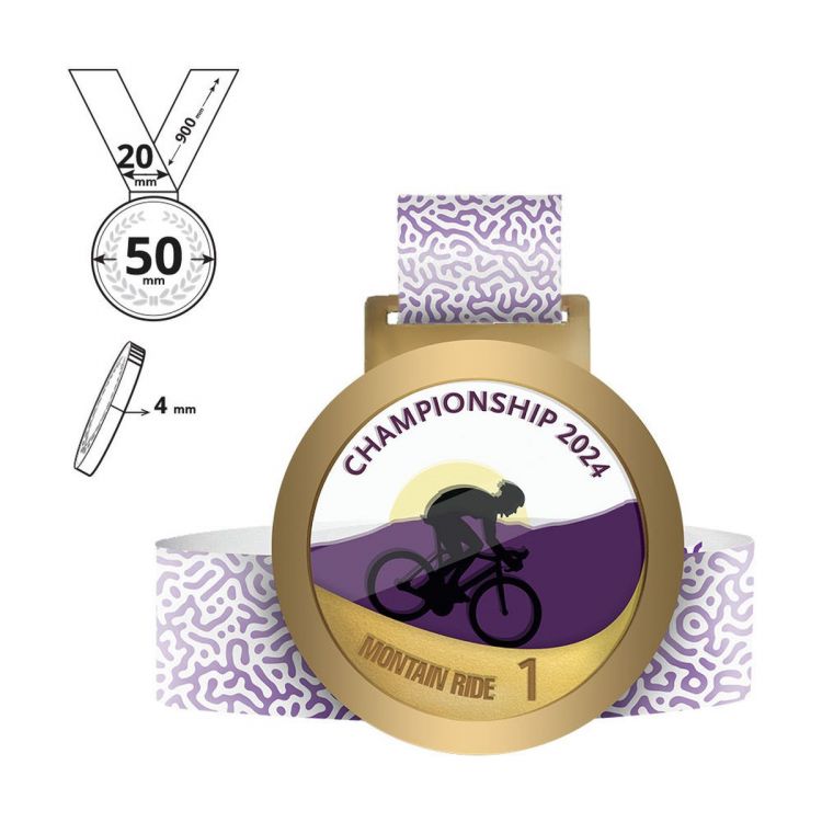 Round medal made of two combined materials consisting of: 8 mm wide steel edge and plexiglass interior, printed in full colour on the front, and including a fully customisable 20x900mm lanyard. Thanks to the special laser cutting and full colour UV printing on the entire surface, we can realise any customisation requested by the customer.