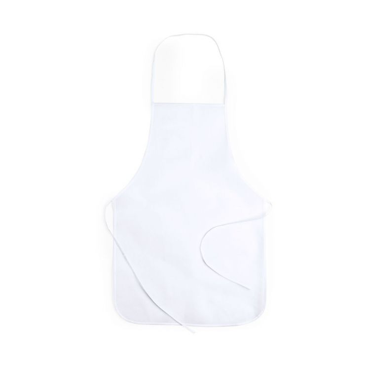 Apron especially designed for sublimation printing. In 80g/m2, non-woven material. Wide printing area, 100% customizable, and with matching color straps. (white color)