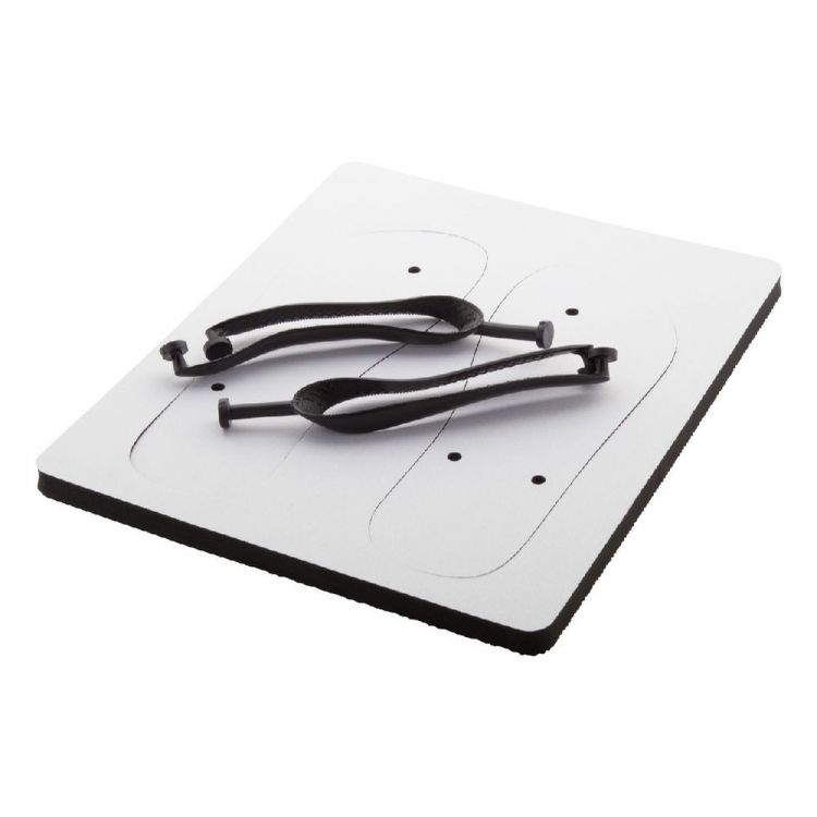 Unisex, sublimation beach slippers with black PVC straps. Price includes sublimation printing. MOQ: 50 pcs