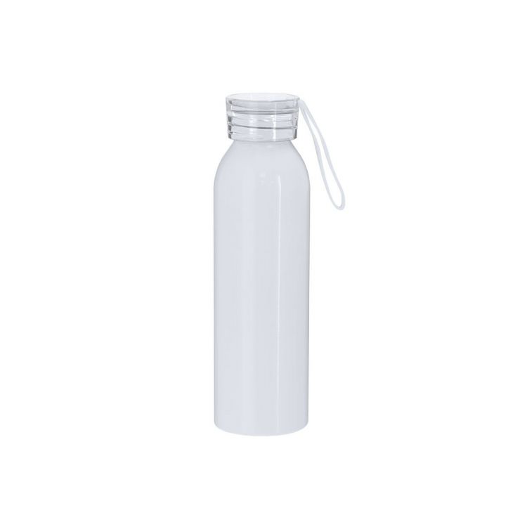 650 ml capacity bottle made of durable aluminum. In shiny white color, specially designed for sublimation. With a translucent screw cap and matching strap for easy transport. BPA-free. (white color)