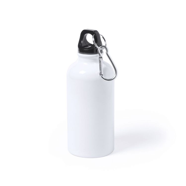 400ml capacity bottle with a smooth and shiny white finish body, especially designed for sublimation printing. With screw-on safety cap and metal carrying carabiner. Presented in an individual box. Instruction manual available in Spanish and English. (white color)