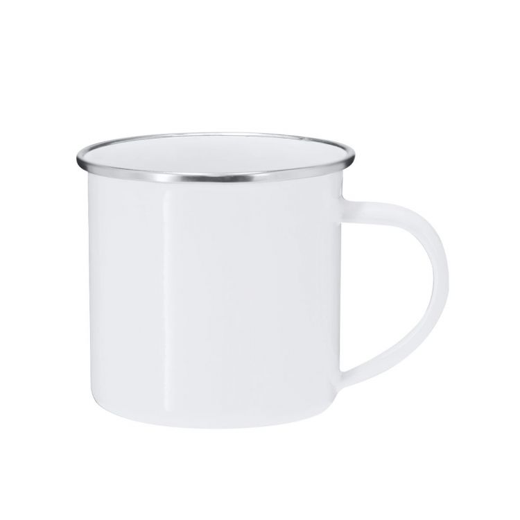 Metal mug with a capacity of 200 ml with a vintage design and glossy white finish with an elegant chrome detail on the edge. Designed especially for sublimation. (white color)