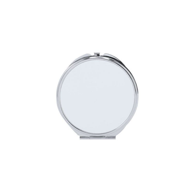 Folding metal mirror with an area for sublimation (not integrated into the product, ideal for printing and applying later). With two interior mirrors: 1X and 2X magnification. (white color)