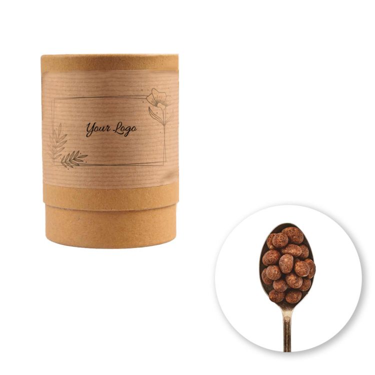Dried fruit packaging. The colours correspond to the type of snack: Dark Brown for coffee beans covered in dark chocolate (100 g), Chocolate for gooseberries covered in dark chocolate dusted with cocoa (100 g), Copper for sultanas covered in white chocolate dusted with coffee (100 g), Bronze for orange peel covered in dark chocolate with a hint of Earl Grey (100 g), Gold for caramelized peanuts (100 g). Packaging: Kraft paper box with transparent window on the front. Possibility of customization on the adhesive label to be applied on the lid (paper finish: white or kraft, to be chosen when ordering). Minimum shelf life - 6 months.