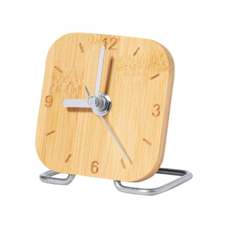 Bamboo and stainless steel table clock. Operates with 1 AA battery, without battery