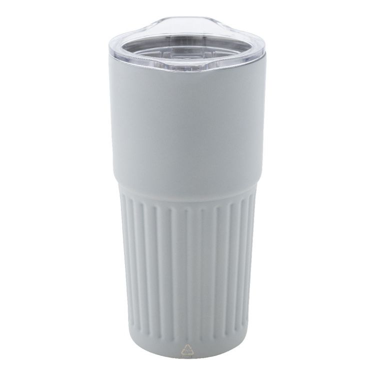 Double-wall, recycled stainless steel insulated thermo cup with ABS plastic drinking lid. 600 ml.
