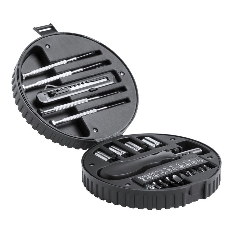 20 pc tool set in car wheel shaped plastic case