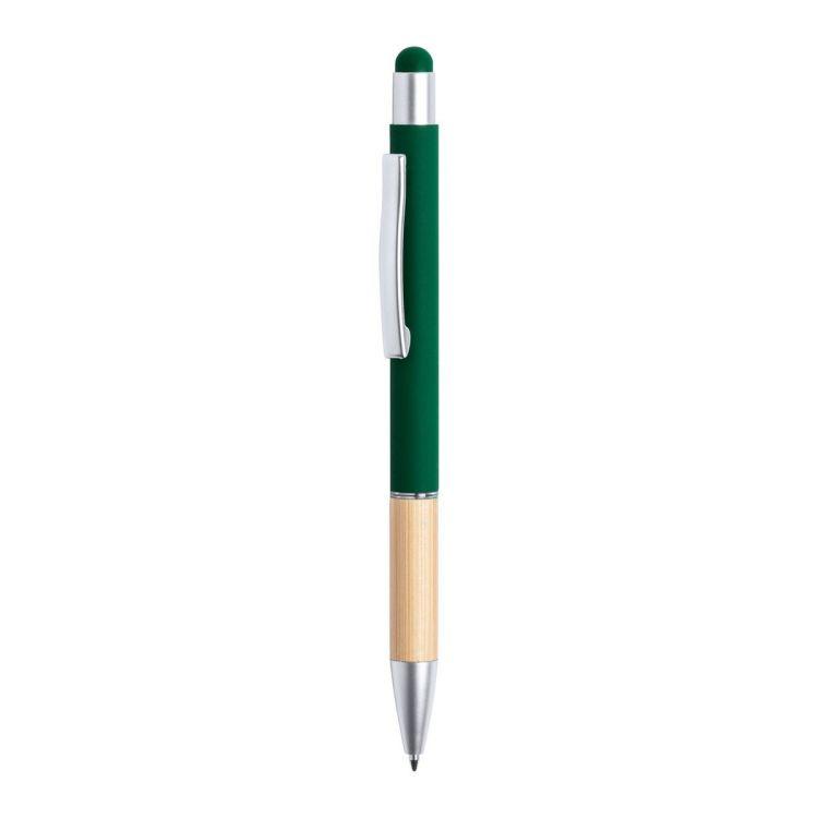 Aluminium ballpoint and touch screen pen with bamboo grip and matte finish. With blue refill.