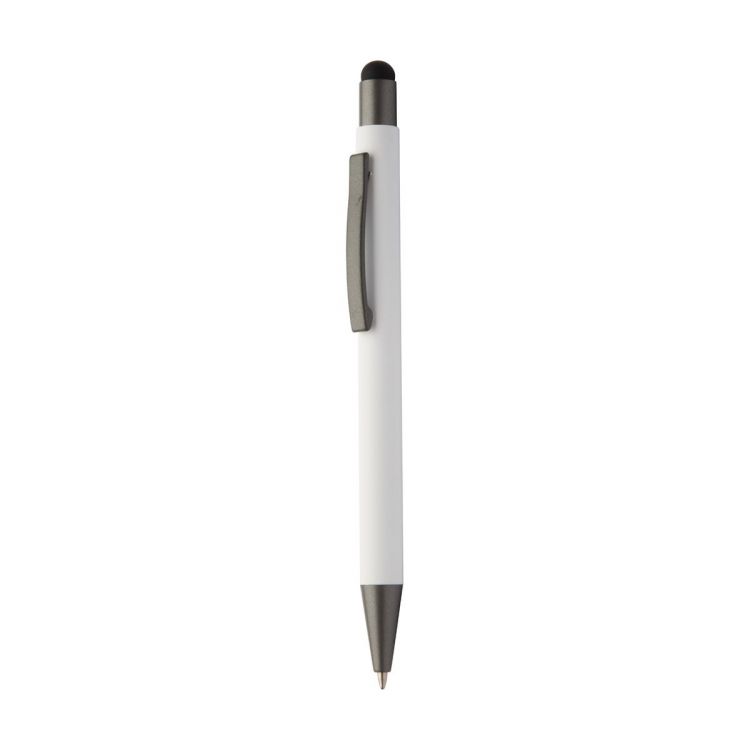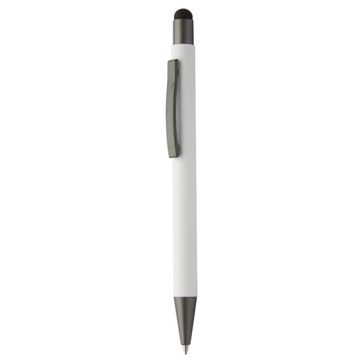 Recycled aluminium ballpoint and touch screen pen with rubberized body and gunmetal finish parts. With blue refill.
