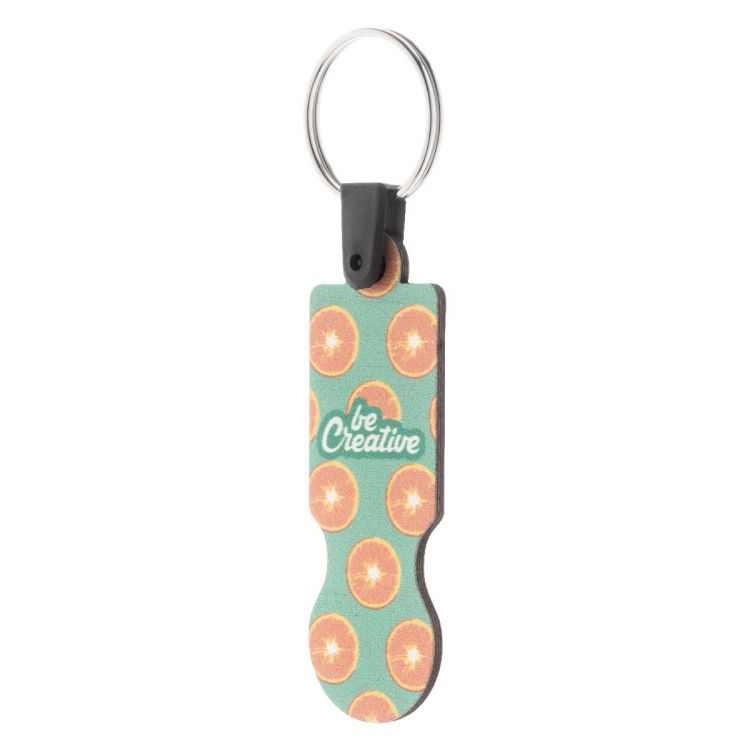 Plywood shopping trolley coin keyring with full colour graphics. Price includes UV LED printing on one side. MOQ: 200 pcs