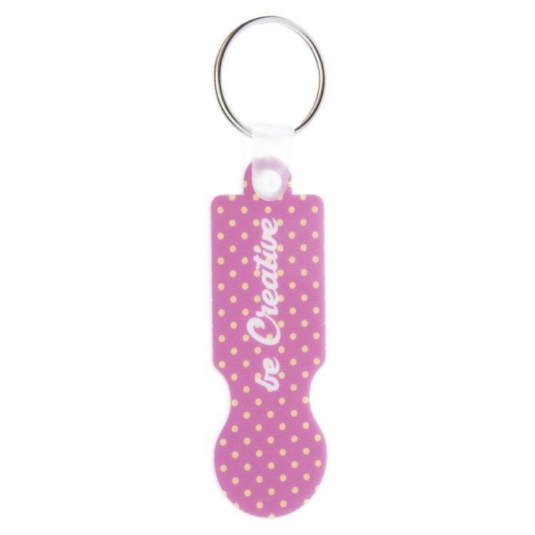 Plastic shopping trolley coin keyring with full colour graphics. Price includes UV LED printing on one side. MOQ: 200 pcs