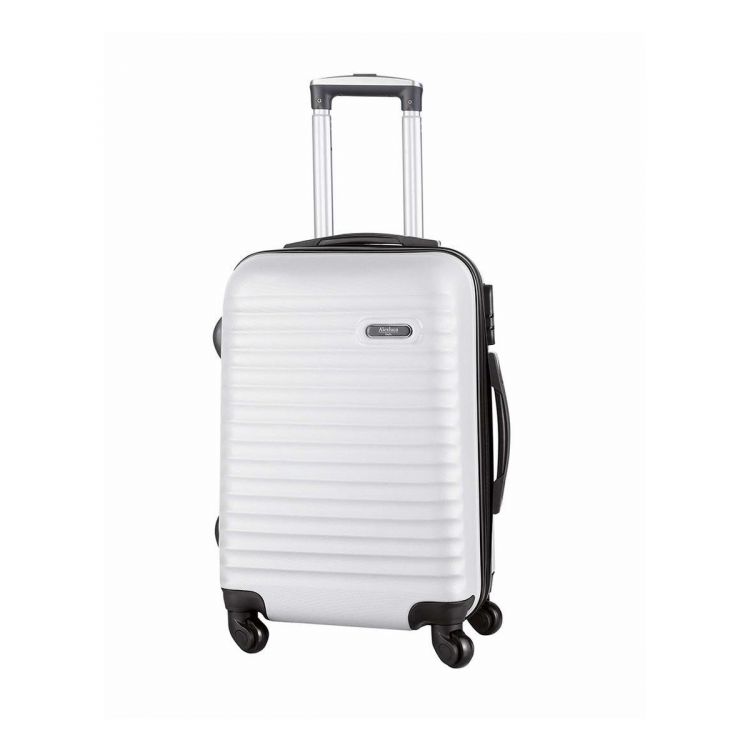 Trolley by Alexluca with 4 telescopic wheels in rigid ABS material of high resistance in varied colors. Main compartment with double puller zipper closure and side zipper with combination security lock. With double handle of comfortable and soft touch and the brand logo on an outside plate. Inside lined with the brand logo and with elastic fastening straps.